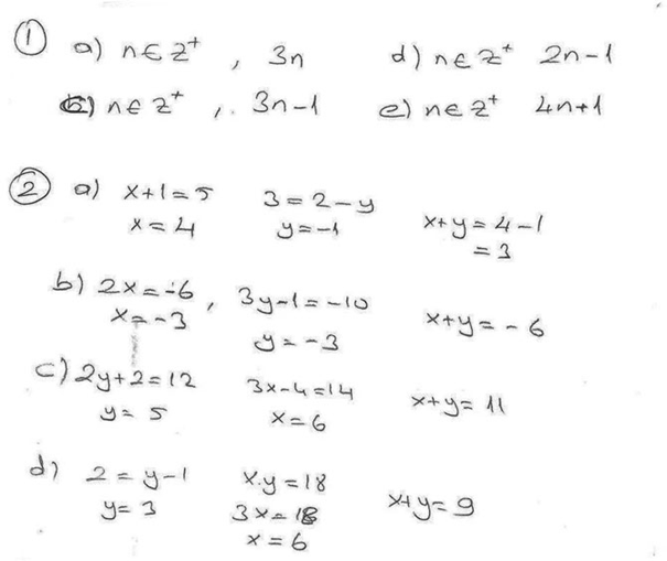 2. Aşağıdaki sıralı ikililerin eşitliklerini sağlayan x ve y sayıları için x + y değerlerini bulunuz.