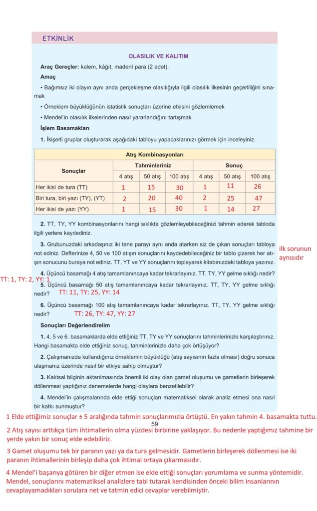 10. Sınıf Biyoloji Tuna Yayınları Sayfa 59 Cevapları / Cevabı
