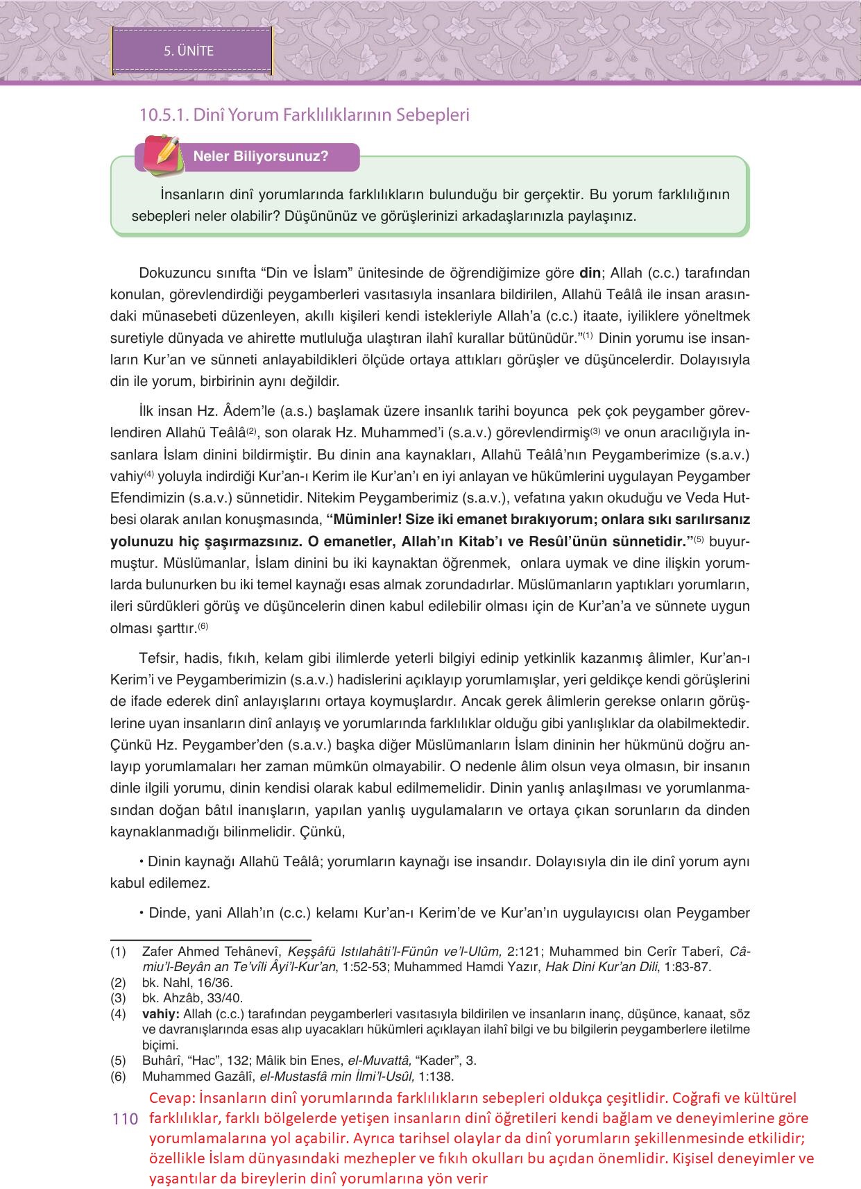 10.sınıf din kültürü ve ahlak bilgisi ders kitabı bilim ve kültür yayınları yayınları sayfa 110 cevap anahtarı cevabı sayfa olarak çözümlerini yanıtları sizler için sunduk. Tüm ders kitabı cevapları gelecek yıl yine sitemizde olacak.