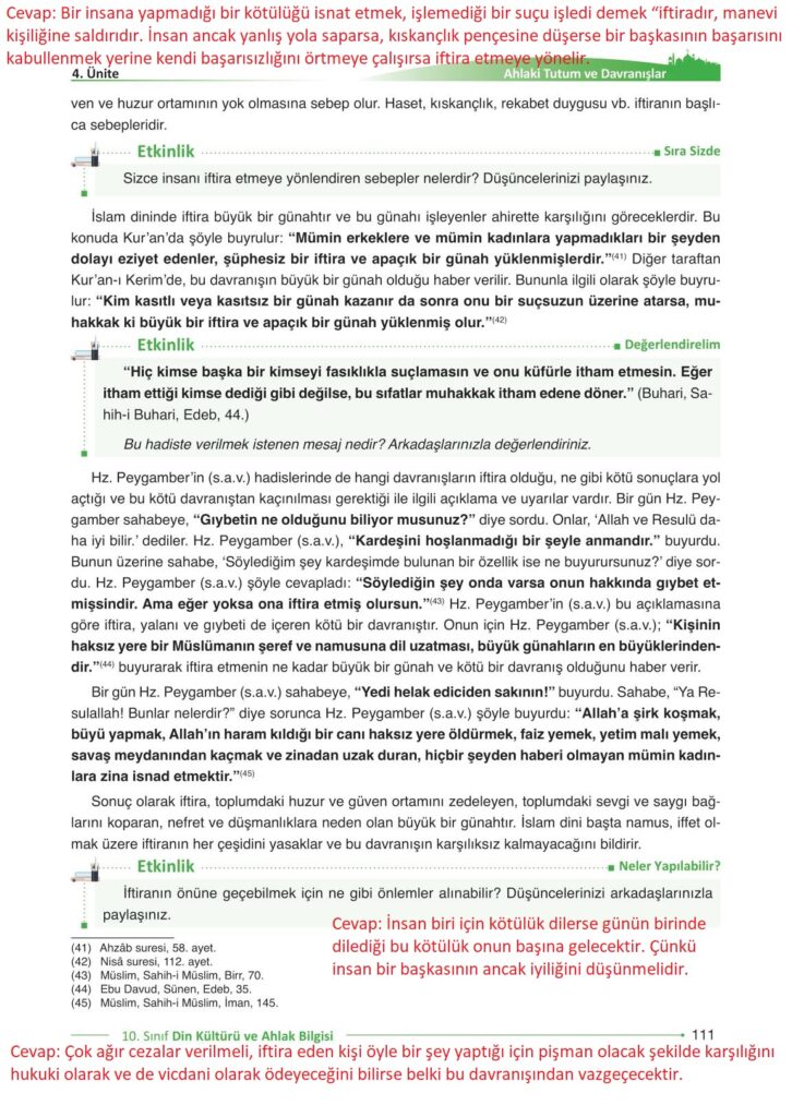 10. Sınıf Din Kültürü ve Ahlak Bilgisi Gezegen Yayıncılık Sayfa 111 Cevapları / Cevabı