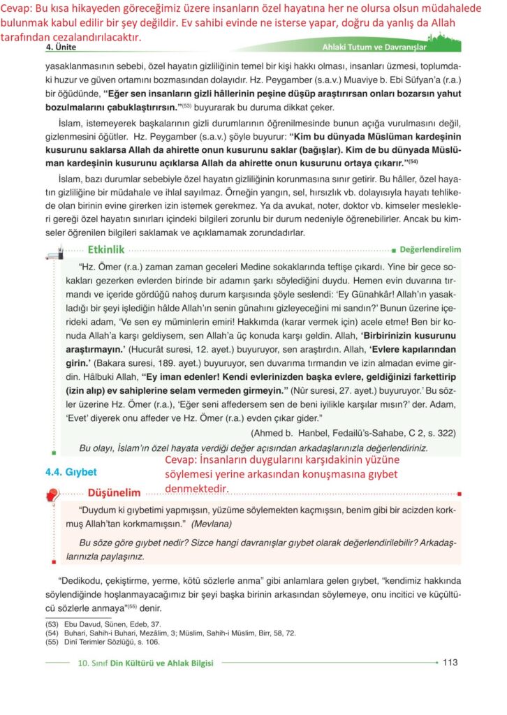 10. Sınıf Din Kültürü ve Ahlak Bilgisi Gezegen Yayıncılık Sayfa 113 Cevapları / Cevabı