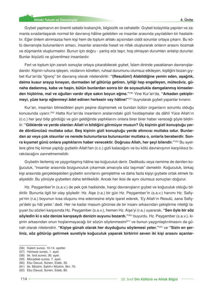 10. Sınıf Din Kültürü ve Ahlak Bilgisi Gezegen Yayıncılık Sayfa 114 Cevapları