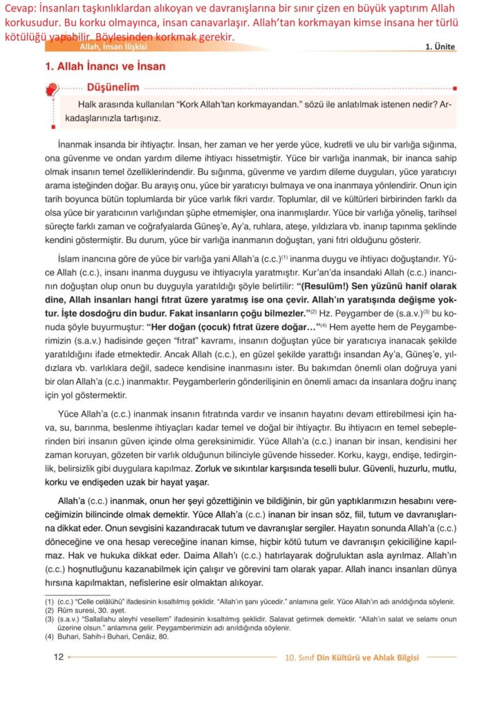 10. Sınıf Din Kültürü ve Ahlak Bilgisi Gezegen Yayıncılık Sayfa 12 Cevapları / Cevabı