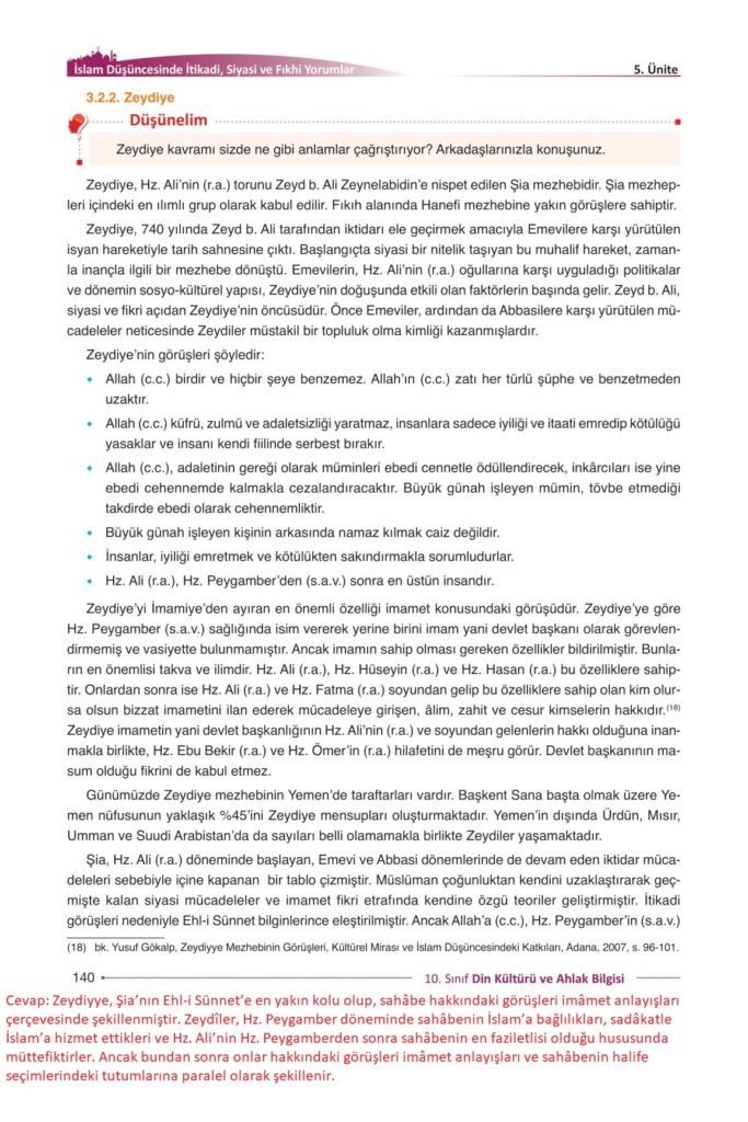 10. Sınıf Din Kültürü ve Ahlak Bilgisi Gezegen Yayıncılık Sayfa 140 Cevapları / Cevabı