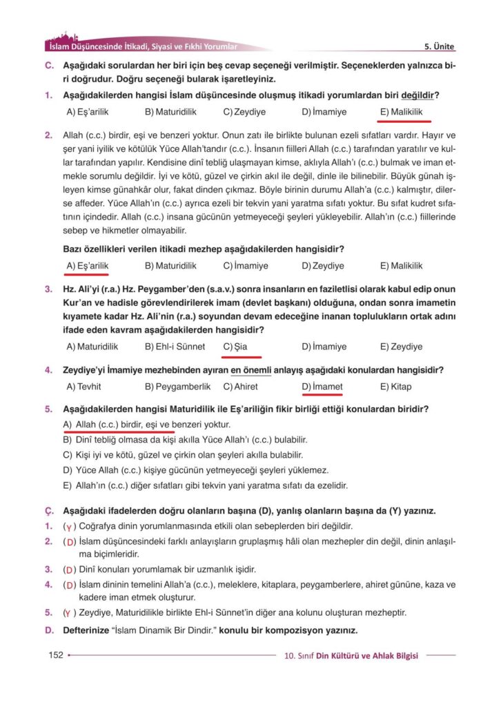 10. SINIF DERS KİTABI CEVAPLARI TÜM DERSLER