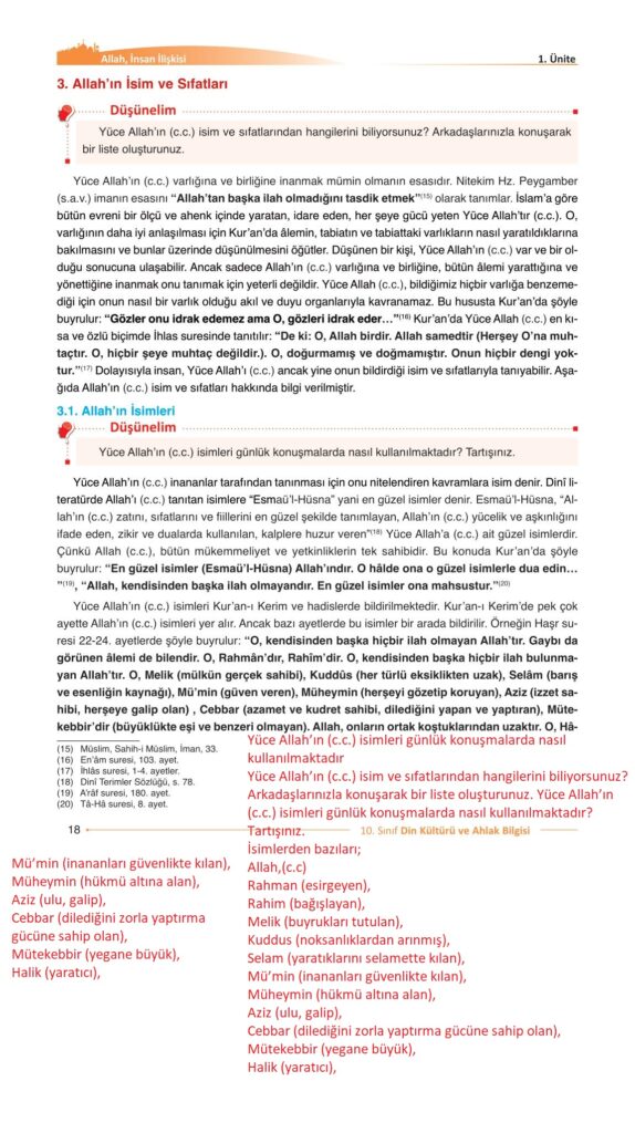 10. Sınıf Din Kültürü ve Ahlak Bilgisi Gezegen Yayıncılık Sayfa 18 Cevapları / Cevabı