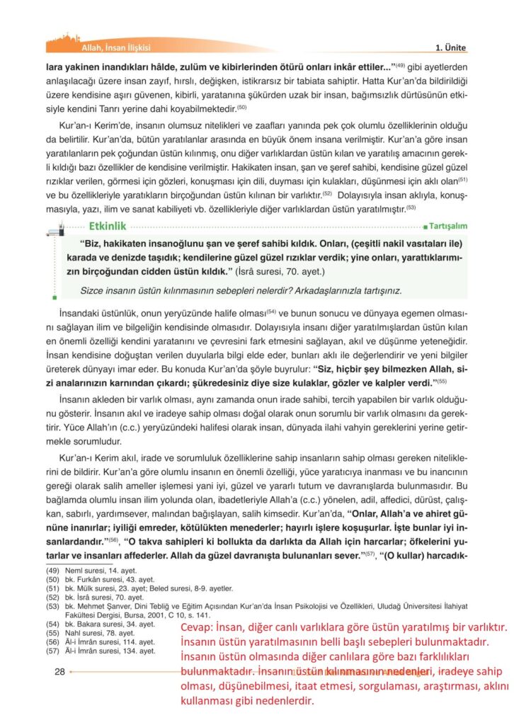 10. Sınıf Din Kültürü ve Ahlak Bilgisi Gezegen Yayıncılık Sayfa 28 Cevapları / Cevabı