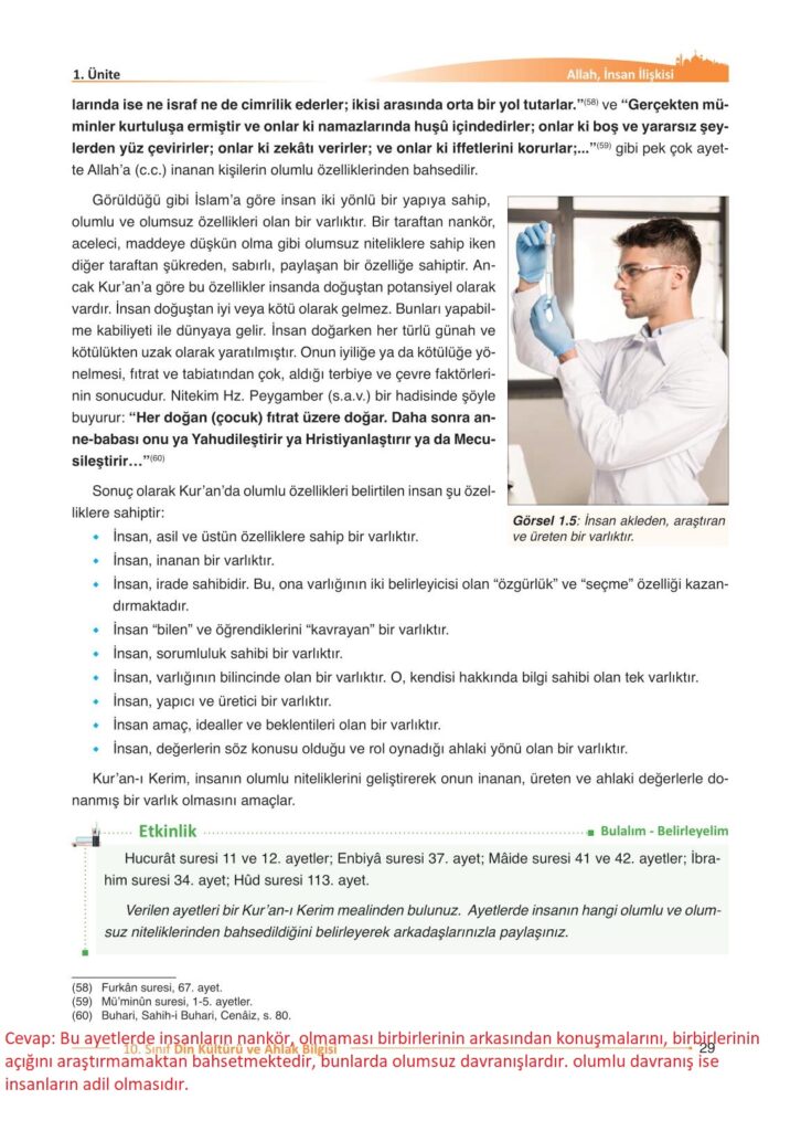10. Sınıf Din Kültürü ve Ahlak Bilgisi Gezegen Yayıncılık Sayfa 29 Cevapları / Cevabı