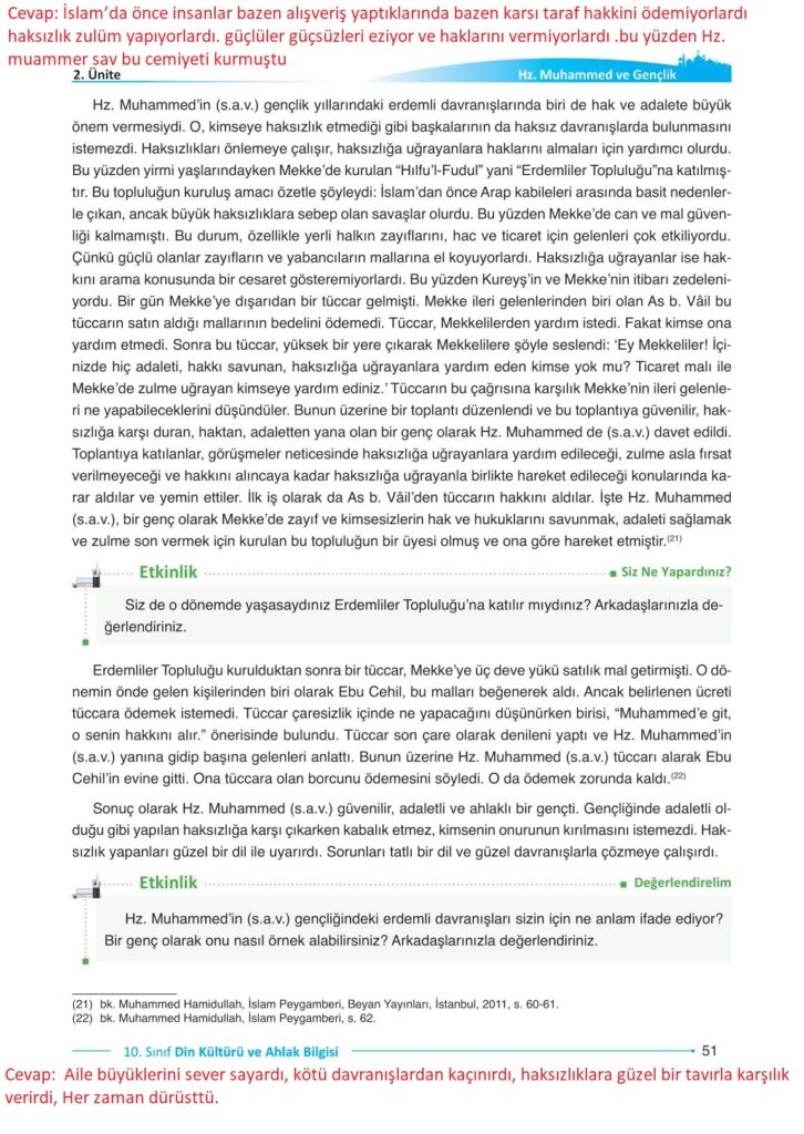 10. Sınıf Din Kültürü ve Ahlak Bilgisi Gezegen Yayıncılık Sayfa 51 Cevapları / Cevabı