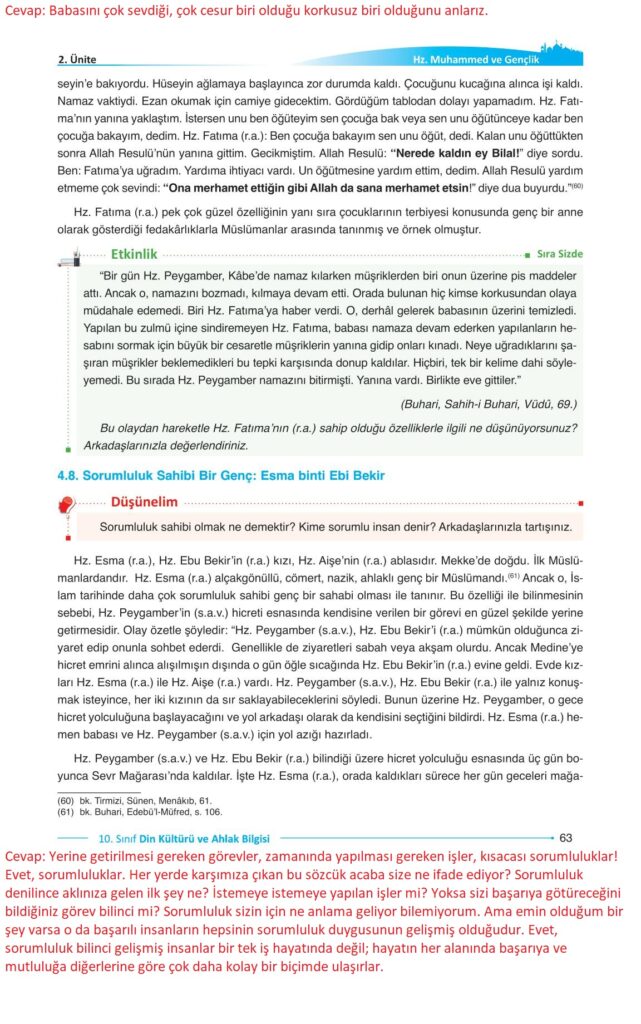 10. Sınıf Din Kültürü ve Ahlak Bilgisi Gezegen Yayıncılık Sayfa 63 Cevapları / Cevabı