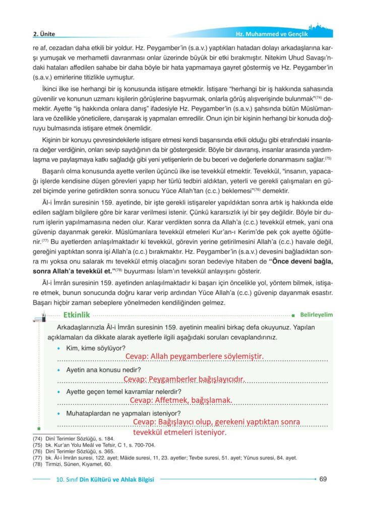 10. SINIF DERS KİTABI CEVAPLARI TÜM DERSLER