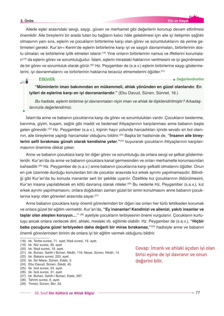 10. Sınıf Din Kültürü ve Ahlak Bilgisi Gezegen Yayıncılık Sayfa 77 Cevapları / Cevabı