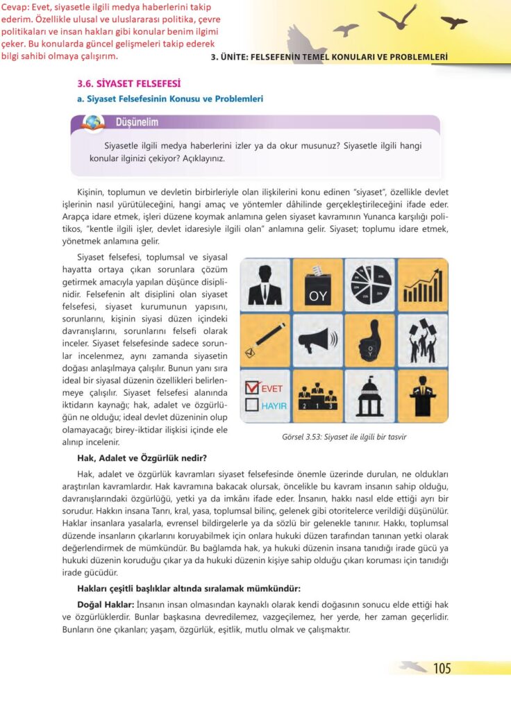 10.sınıf felsefe ders kitabı bilim ve kültür yayınları sayfa 105 cevap anahtarı cevabı sayfa olarak çözümlerini yanıtları sizler için sunduk. Tüm ders kitabı cevapları gelecek yıl yine sitemizde olacak.