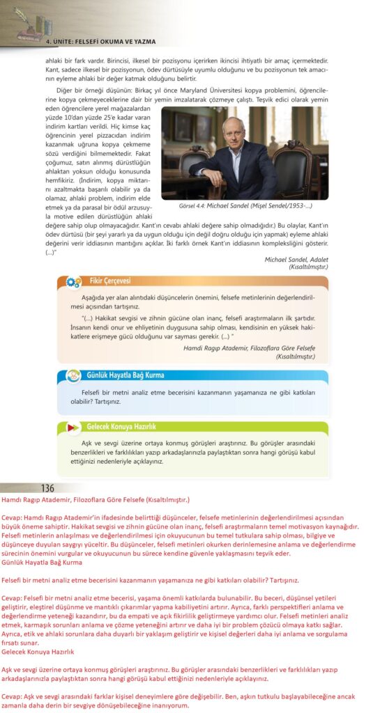 10. Sınıf Felsefe Ders Kitabı Bilim ve Kültür Yayınları Sayfa 136 Cevapları
