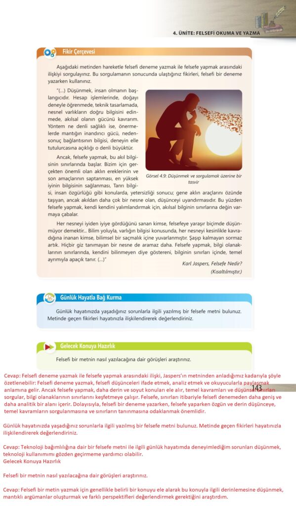 10. Sınıf Felsefe Ders Kitabı Bilim ve Kültür Yayınları Sayfa 143 Cevapları
