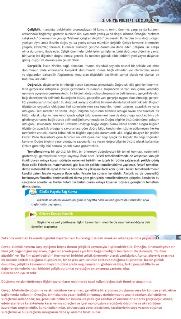 10. Sınıf Felsefe Ders Kitabı Bilim ve Kültür Yayınları Sayfa 35 Cevapları