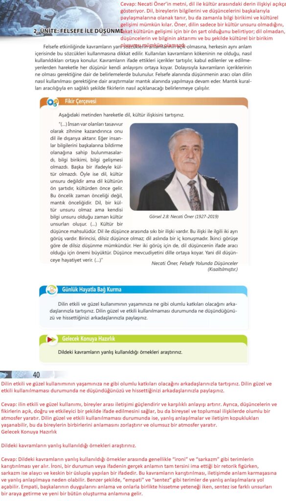 10. Sınıf Felsefe Ders Kitabı Bilim ve Kültür Yayınları Sayfa 40 Cevapları