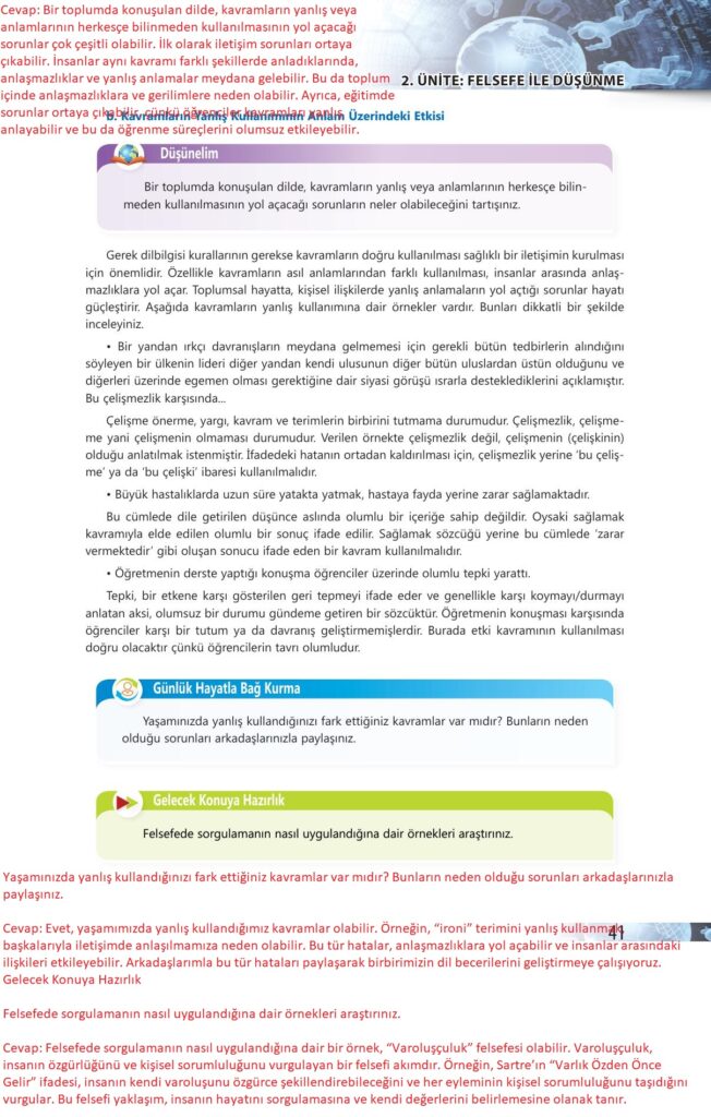 10. Sınıf Felsefe Ders Kitabı Bilim ve Kültür Yayınları Sayfa 41 Cevapları