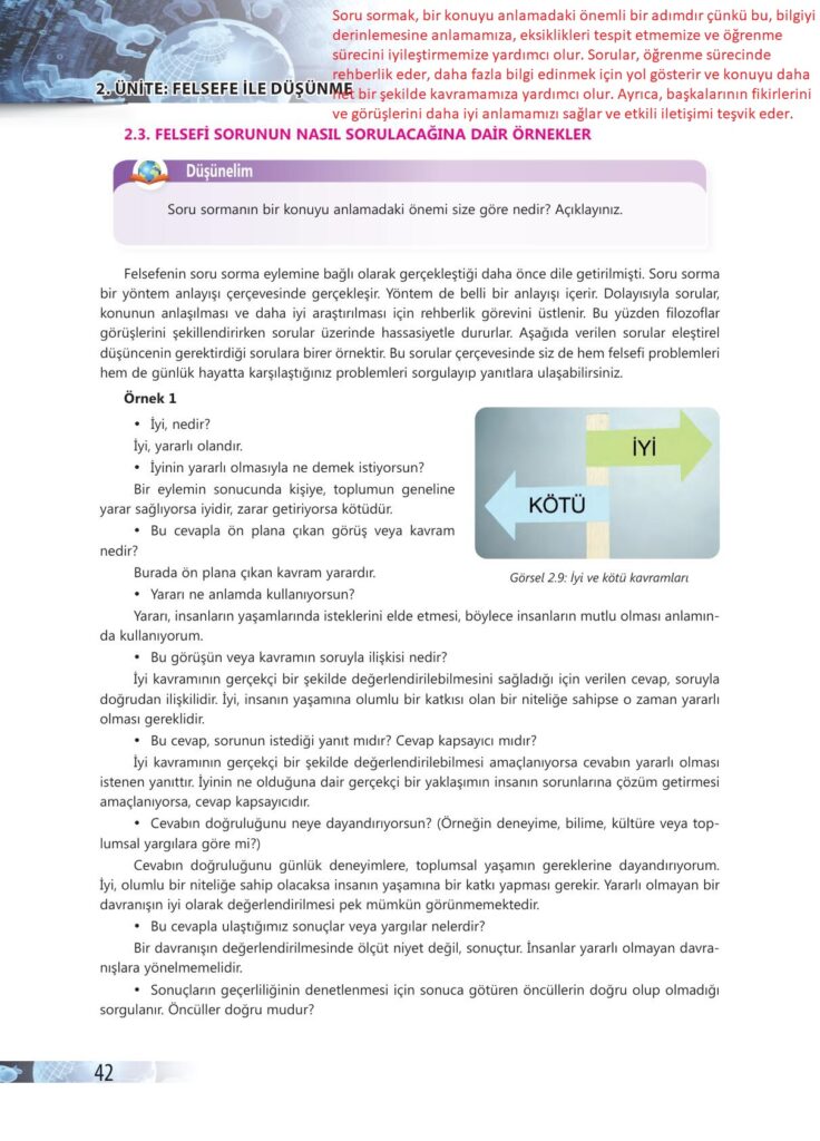 10. Sınıf Felsefe Ders Kitabı Bilim ve Kültür Yayınları Sayfa 42 Cevapları