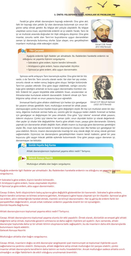 10. Sınıf Felsefe Ders Kitabı Bilim ve Kültür Yayınları Sayfa 89 Cevapları