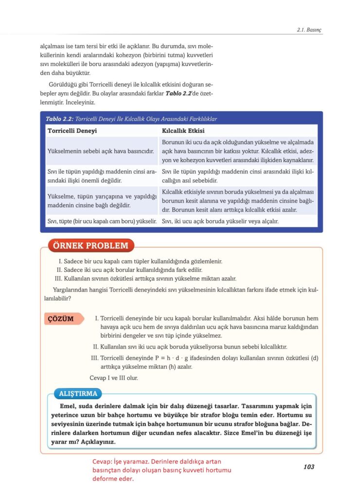 10. Sınıf Fizik Ekoyay Yayınları Sayfa 103 Cevapları / Cevabı