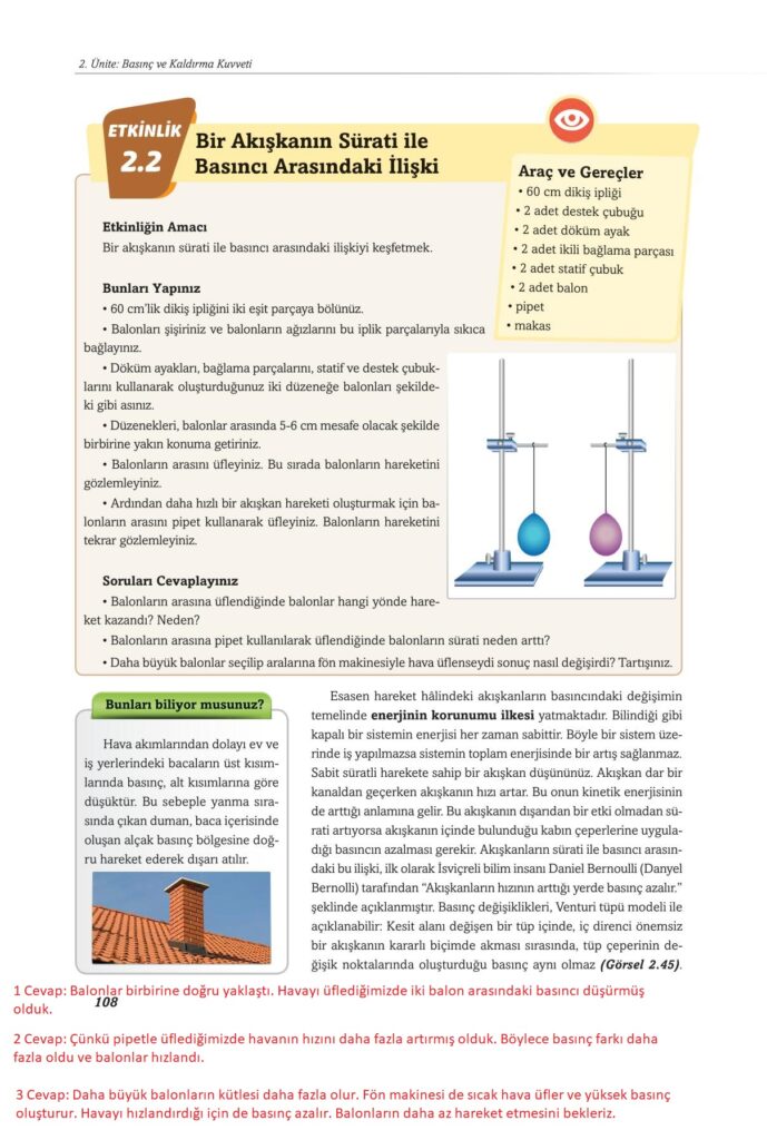 10. Sınıf Fizik Ekoyay Yayınları Sayfa 108 Cevapları / Cevabı