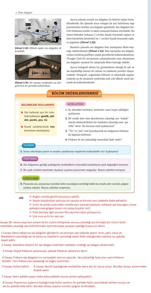 10. Sınıf Fizik Ekoyay Yayınları Sayfa 180 Cevapları / Cevabı