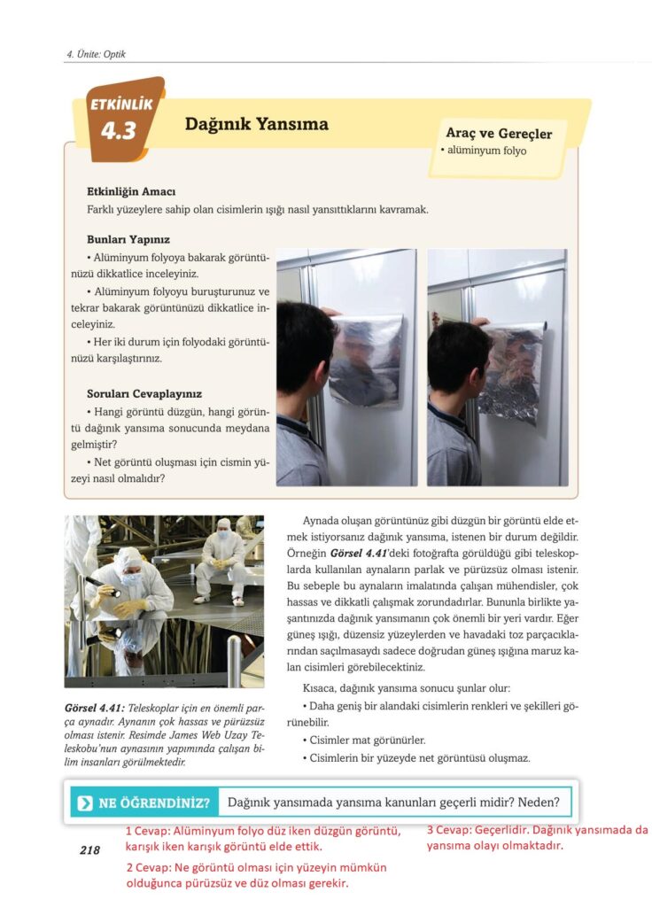 10. SINIF FİZİK EKOYAY YAYINLARI DERS KİTABI CEVAPLARI TÜM SAYFALAR