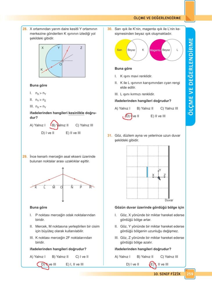 10. Sınıf Fizik Meb Yayınları Sayfa 259 Cevapları / Cevabı