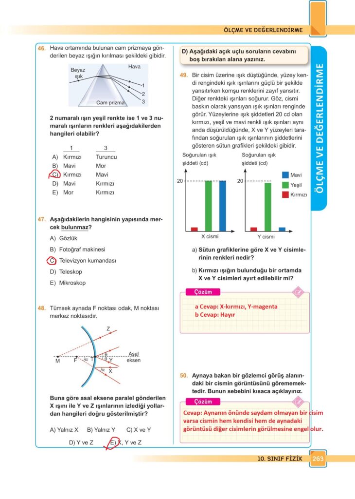 10. Sınıf Fizik Meb Yayınları Sayfa 263 Cevapları / Cevabı