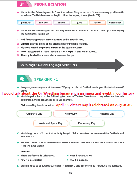 10. Sınıf İngilizce Gizem Yayıncılık Sayfa 92 Cevapları
