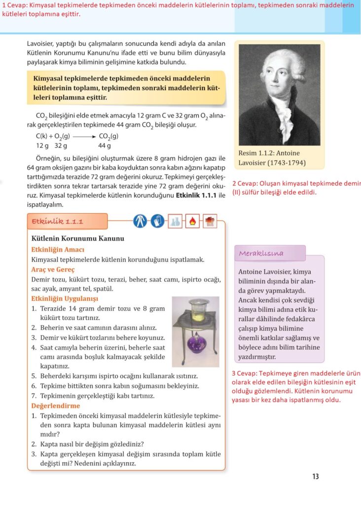 10. Sınıf Kimya Anadol Yayıncılık Sayfa 13 Cevapları / Cevabı