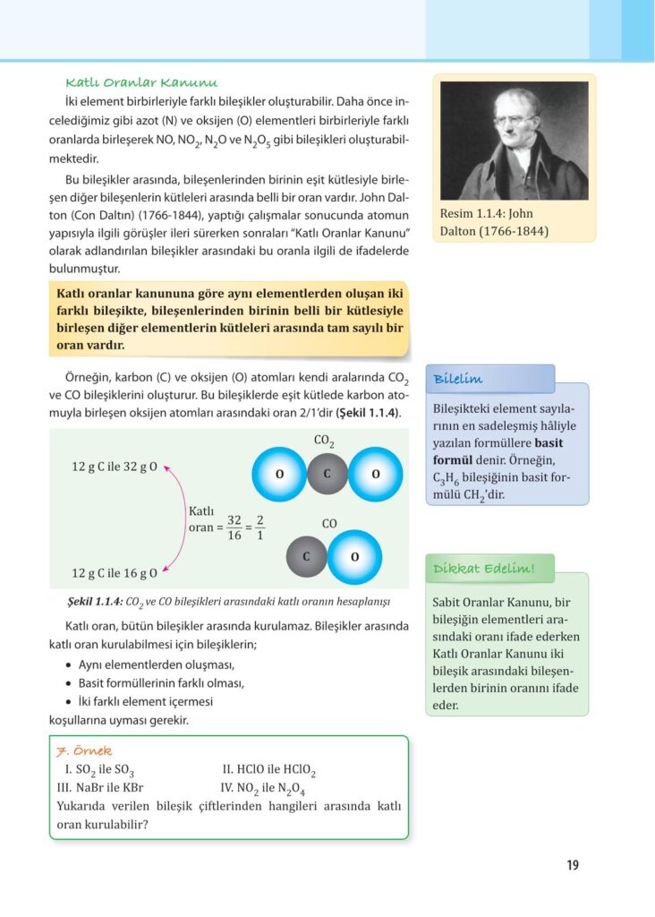 10. Sınıf Kimya Anadol Yayıncılık Sayfa 19 Cevapları / Cevabı