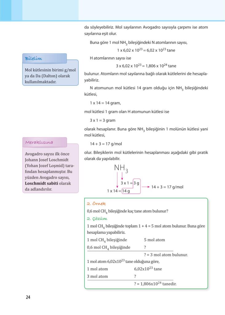 10. Sınıf Kimya Anadol Yayıncılık Sayfa 24 Cevapları / Cevabı