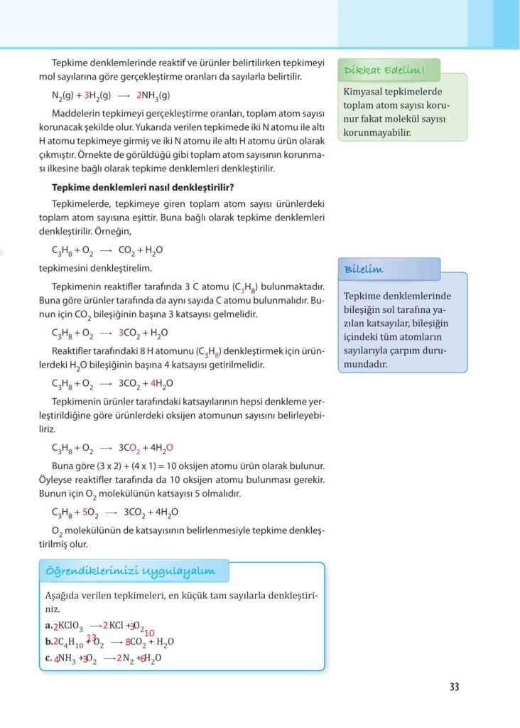 10. Sınıf Kimya Anadol Yayıncılık Sayfa 33 Cevapları / Cevabı