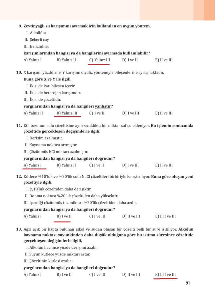 10. Sınıf Kimya Anadol Yayıncılık Sayfa 91 Cevapları / Cevabı
