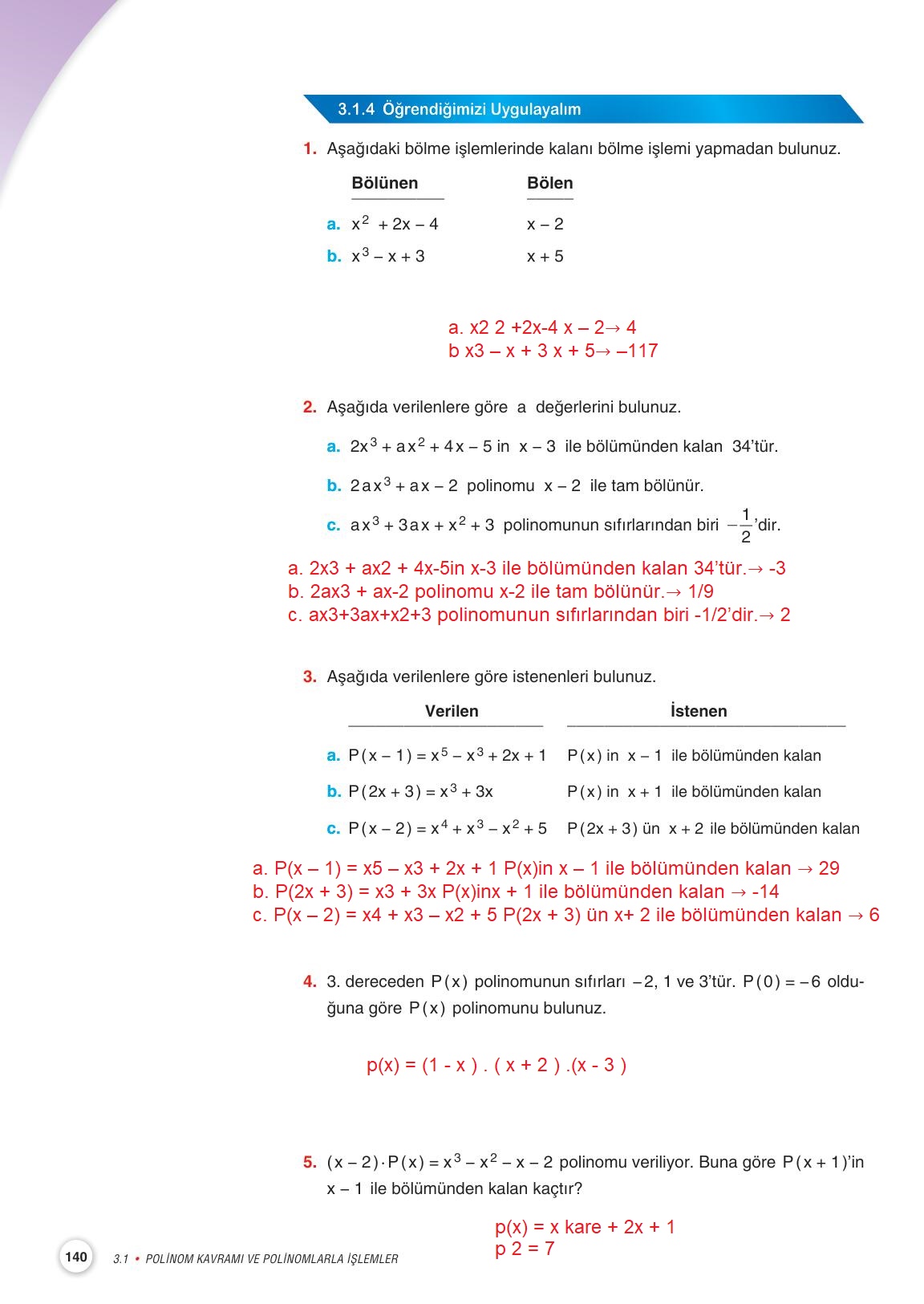 10.sınıf matematik ders kitabı miray yayınları sayfa 140 cevap anahtarı cevabı sayfa olarak çözümlerini yanıtları sizler için sunduk. Tüm ders kitabı cevapları gelecek yıl yine sitemizde olacak.