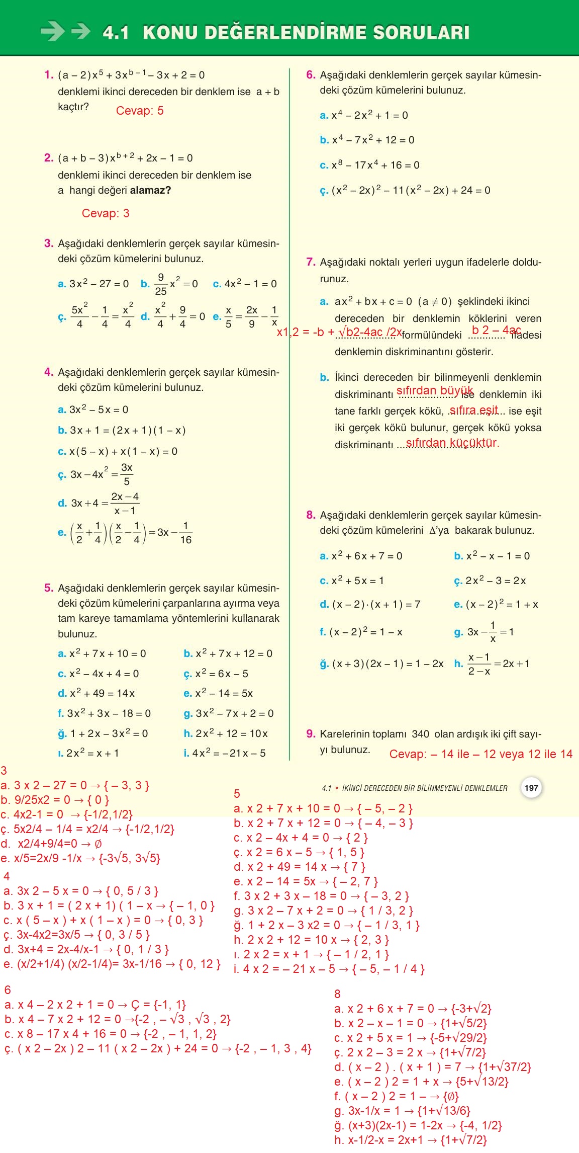 10.sınıf matematik ders kitabı miray yayınları sayfa 197 cevap anahtarı cevabı sayfa olarak çözümlerini yanıtları sizler için sunduk. Tüm ders kitabı cevapları gelecek yıl yine sitemizde olacak.