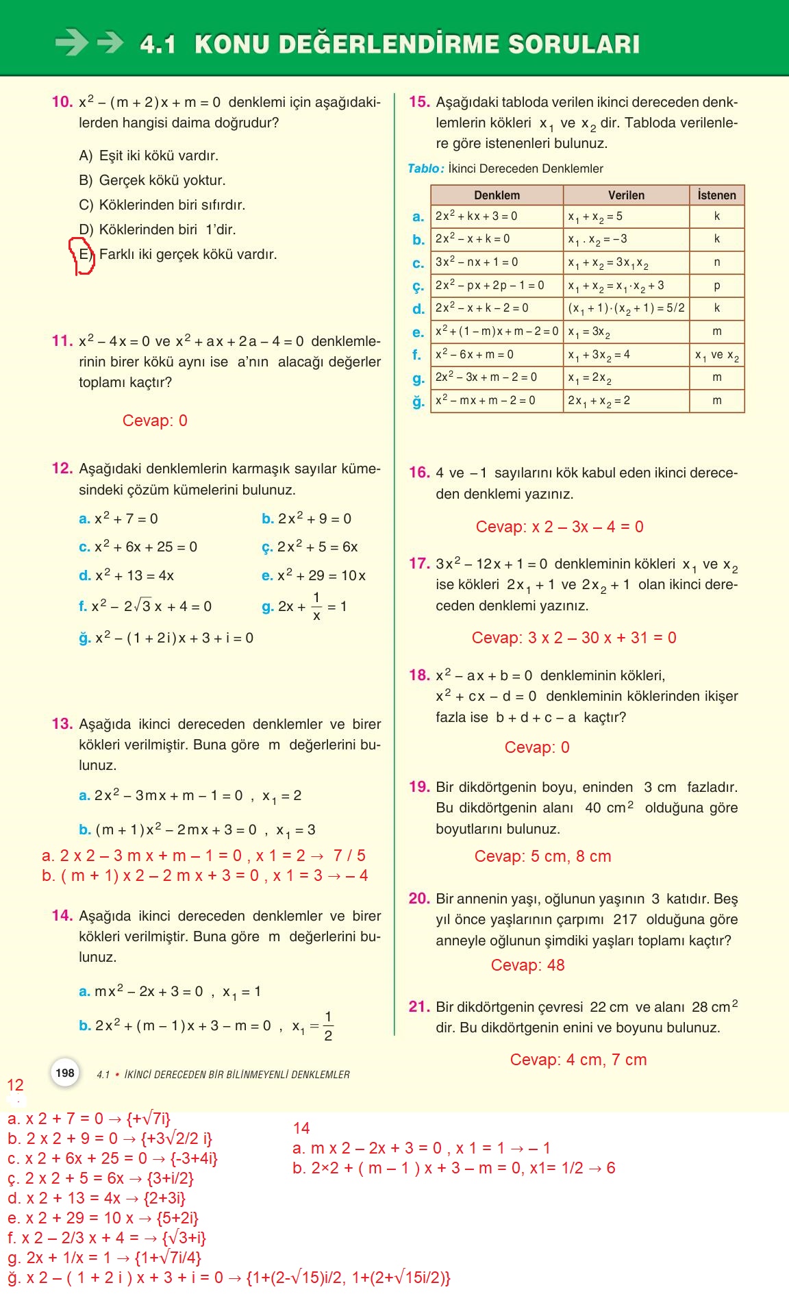 10.sınıf matematik ders kitabı miray yayınları sayfa 198 cevap anahtarı cevabı sayfa olarak çözümlerini yanıtları sizler için sunduk. Tüm ders kitabı cevapları gelecek yıl yine sitemizde olacak.