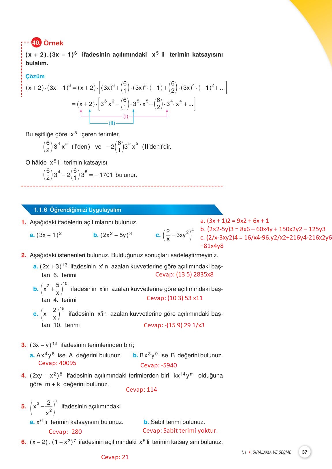 10.sınıf matematik ders kitabı miray yayınları sayfa 37 cevap anahtarı cevabı sayfa olarak çözümlerini yanıtları sizler için sunduk. Tüm ders kitabı cevapları gelecek yıl yine sitemizde olacak.