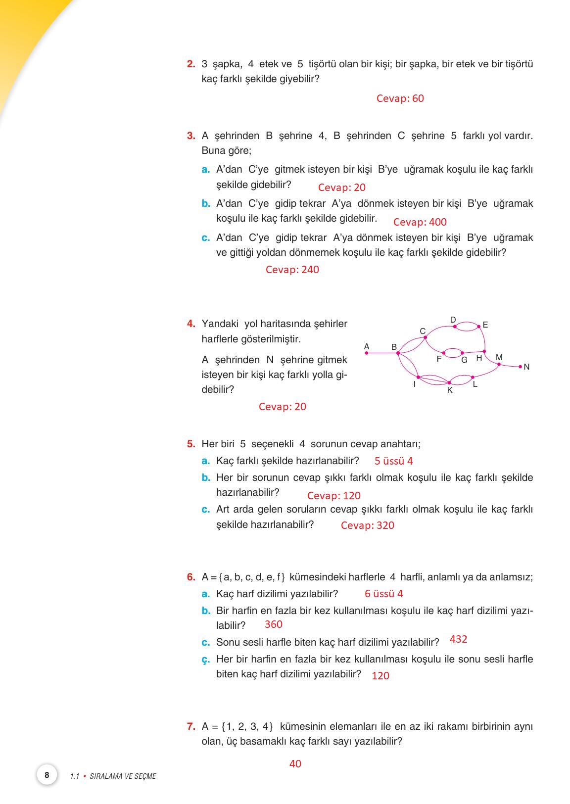 10. SINIF MATEMATİK MİRAY YAYINLARI DERS KİTABI CEVAPLARI TÜM SAYFALAR