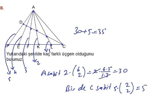 Yukarıdaki şekilde kaç farklı üçgen olduğunu bulunuz.