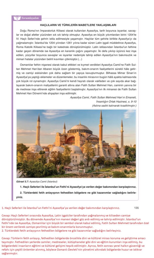 10. Sınıf Tarih Ders Kitabı Ata Yayınları Sayfa 135 Cevapları