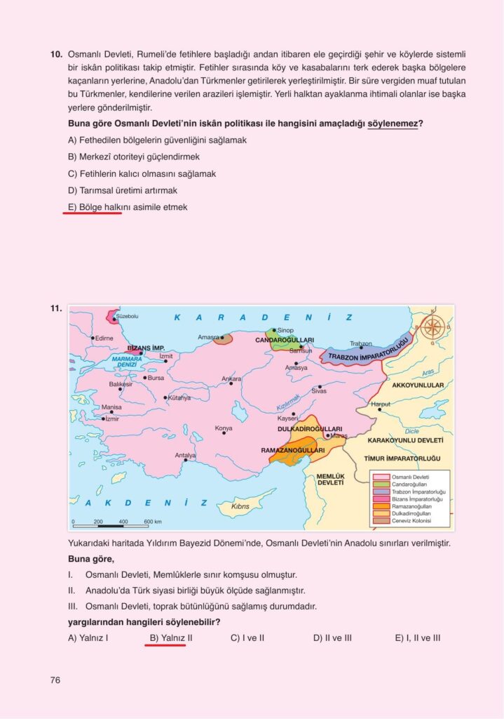 10. Sınıf Tarih Ders Kitabı Ata Yayınları Sayfa 76 Cevapları