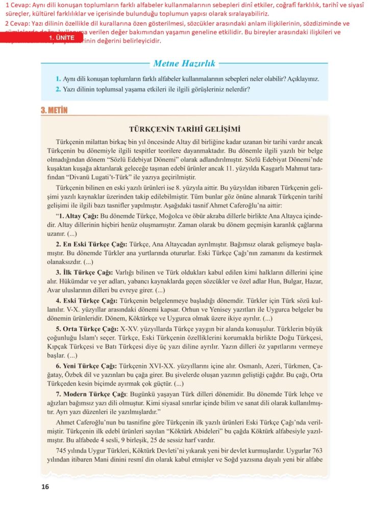 10. SINIF DERS KİTABI CEVAPLARI TÜM DERSLER