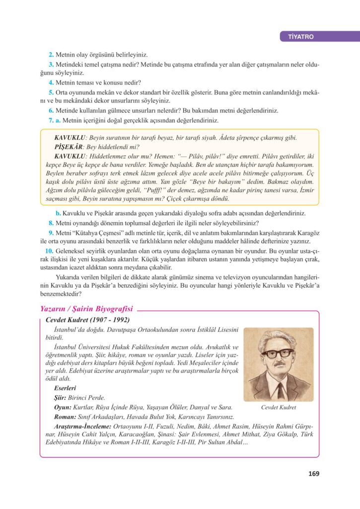 10. Sınıf Türk Dili ve Edebiyatı Düşler Yayıncılık Sayfa 169 Cevapları / Cevabı