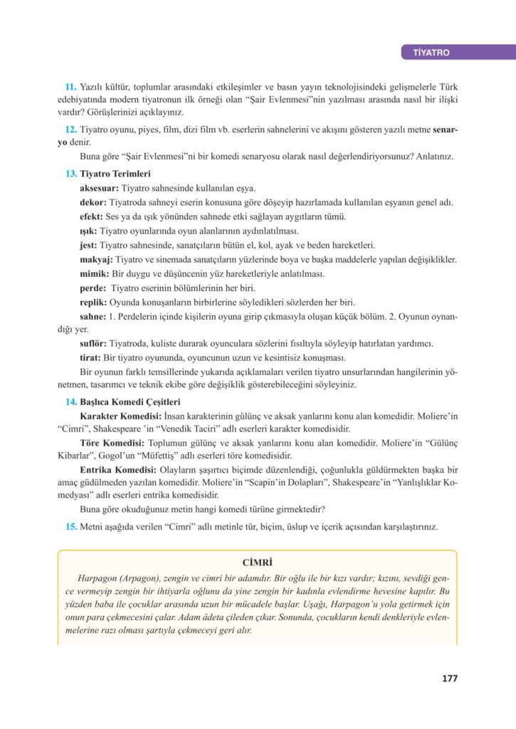 10. Sınıf Türk Dili ve Edebiyatı Düşler Yayıncılık Sayfa 177 Cevapları / Cevabı