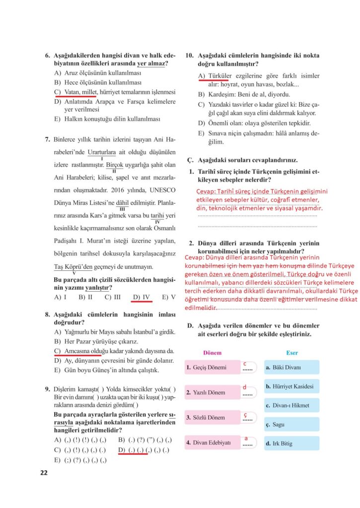 10. Sınıf Türk Dili ve Edebiyatı Düşler Yayıncılık Sayfa 22 Cevapları / Cevabı