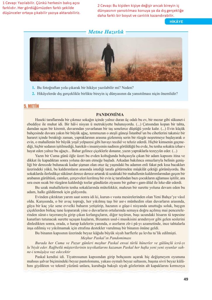 10. Sınıf Türk Dili ve Edebiyatı Düşler Yayıncılık Sayfa 49 Cevapları / Cevabı