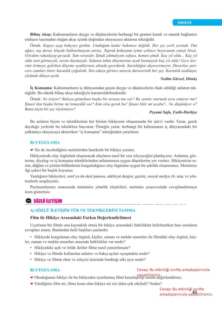 10. Sınıf Türk Dili ve Edebiyatı Düşler Yayıncılık Sayfa 65 Cevapları / Cevabı